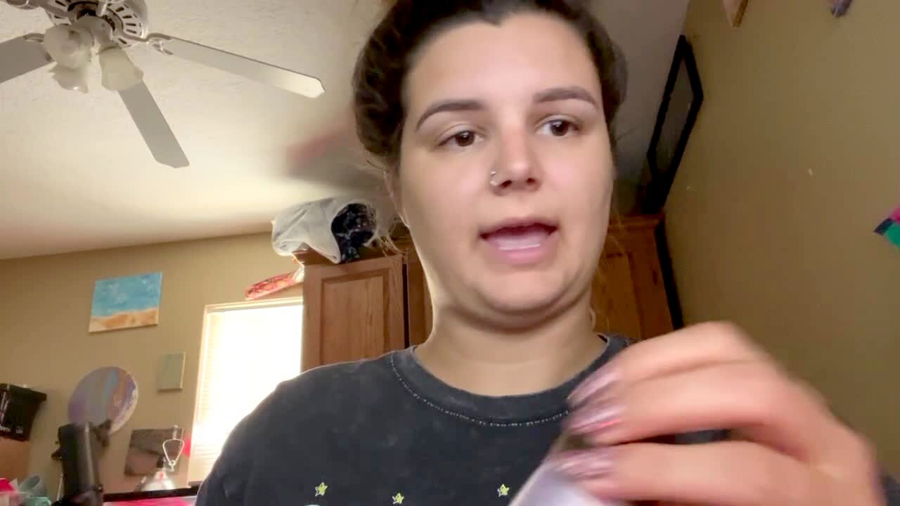 A teen girl drops the lid to a container of moisturizer in a bedroom, then licks moisturizer off of her finger. She spits and says "why did I do that?"