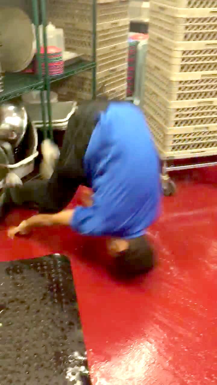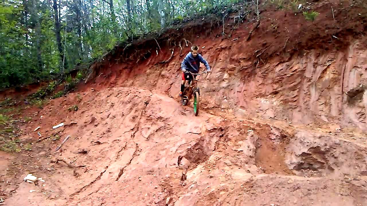 "Can't-Do-Karate Kid" A boy introduces himself outdoors as a very powerful kid before he karate-chops sticks between cinder-blocks but can't break them, then uses them as a bat against the cinder-blocks and breaks the cinder-blocks before he throws the sticks away.