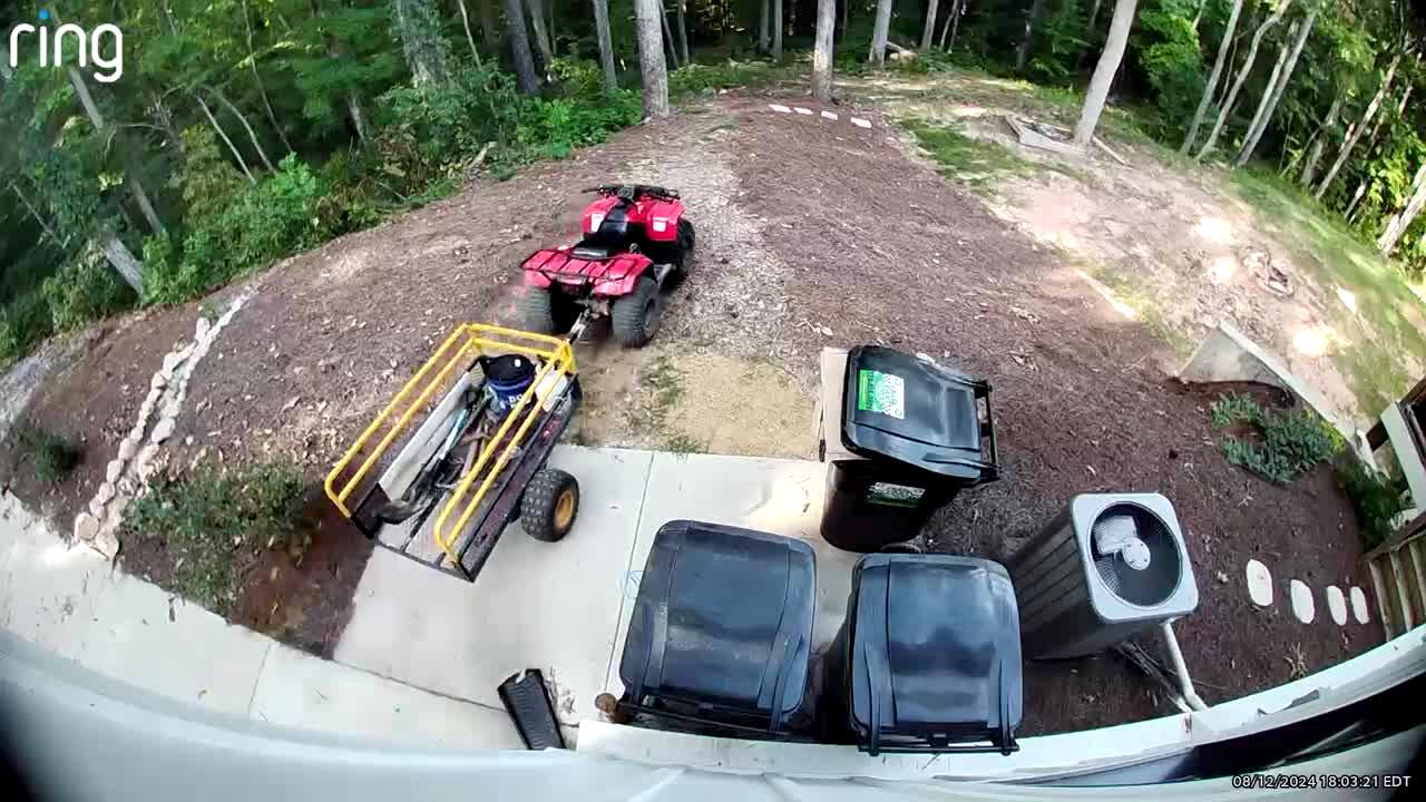 A 4 wheeler rolls down a hill outside by itself. A man screams and chases after the ATF but it crashes into a tree. Security Footage.