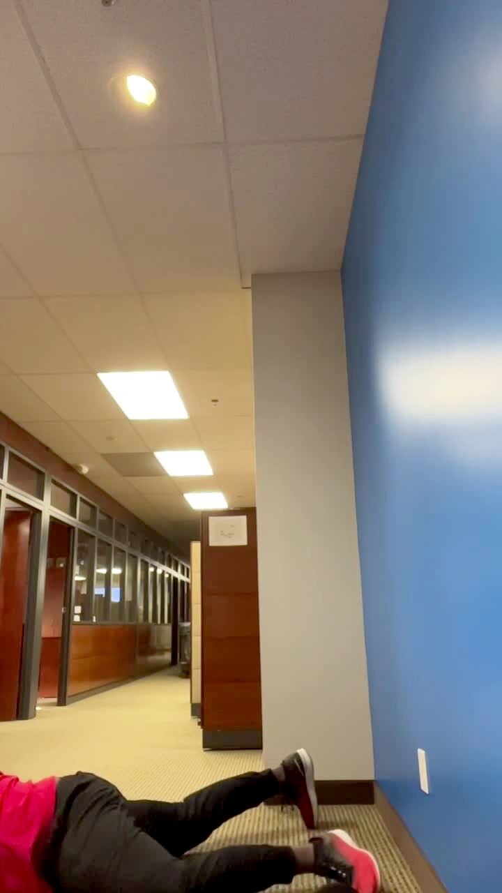 A man attempts to kick a punching bag on the wall. He falls and then the bag falls.