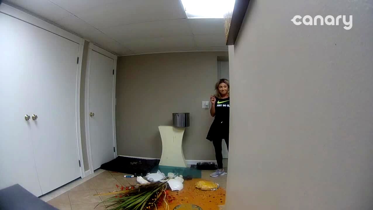 "Crying Over Spilled Sauce" - A woman jokes that she dropped a pot of soup as the pot falls off the table beside her. The woman and her mother yell and argue about the mess on the floor and what they will eat for dinner. Canary security camera.