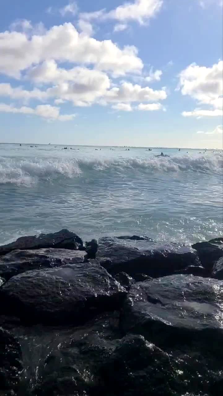 A woman sits on a rocky ledge to pose for a photo at the beach and a wave pushes her over. Featured talent cleared (woman on the rocks).
