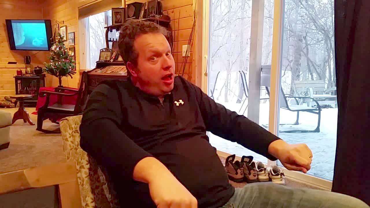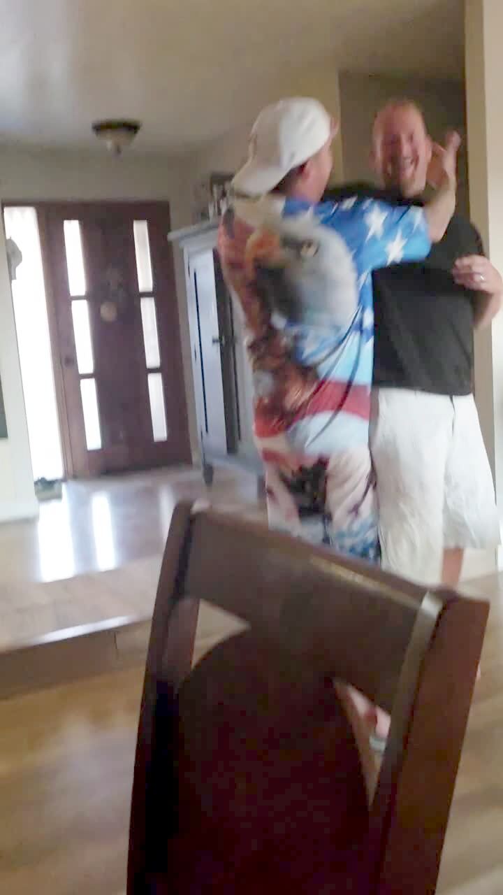 Two men try to dance along with the final scene from Dirty Dancing then one man jumps into the other's arms and they both fall down
